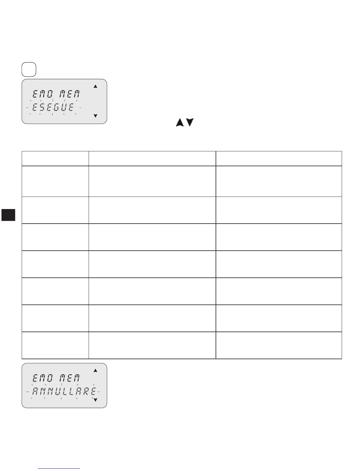 Selezionare il sottomenu desiderato (vedi tabella) 2.