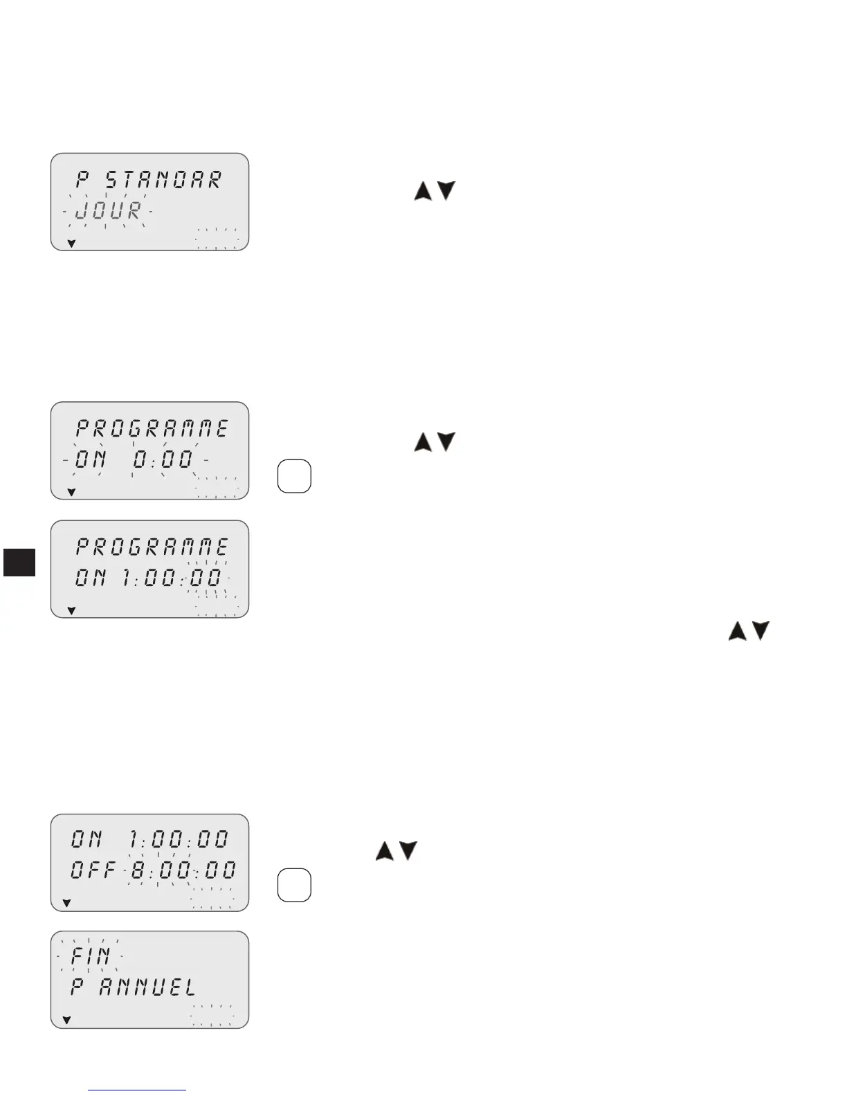 Répétez les opérations de HEURE/ON.