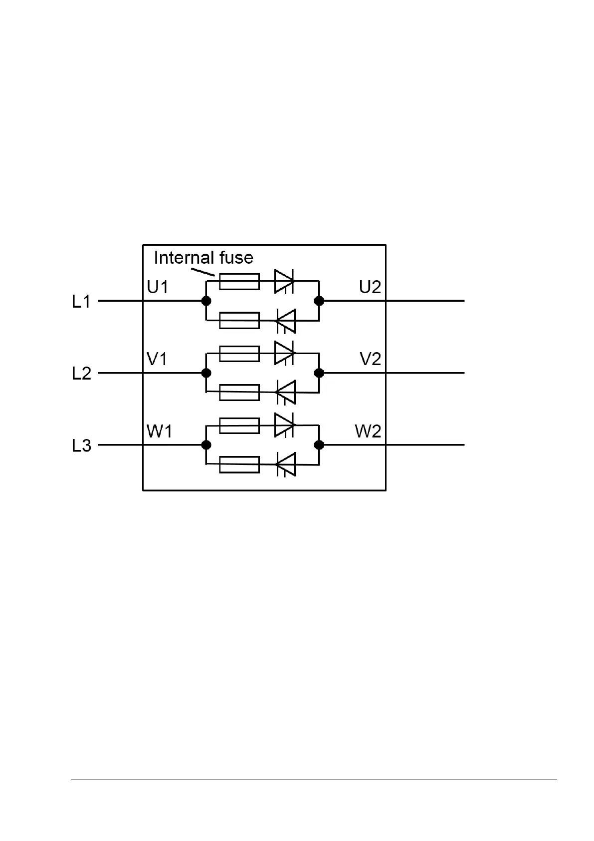 thyristor power controller (e.g. U1 to U2, V1 to V2 and W1 to W2).