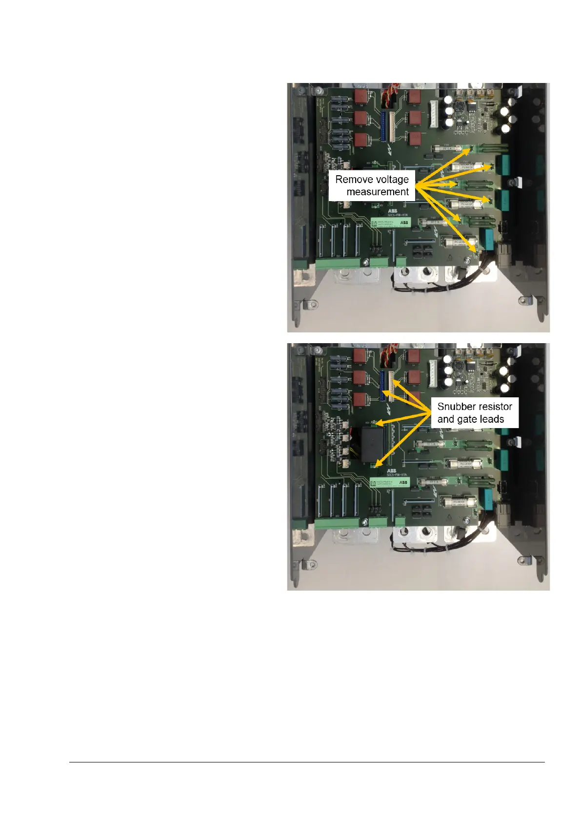 ABB DCT880 - Component Removal for Thyristor Exchange (T5); Remove voltage measurement connections (T5); Remove snubber resistor and gate leads (T5)