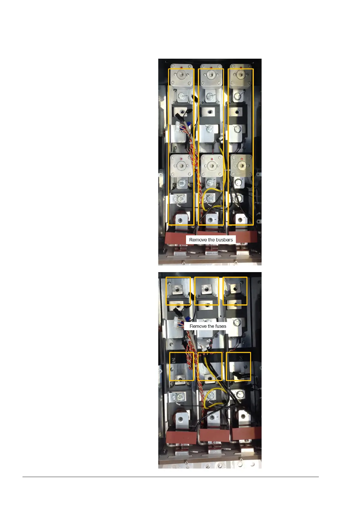 ABB DCT880 - Busbar and Fuse Removal Procedures (T5); Remove busbars from T5 unit; Remove fuses from T5 unit