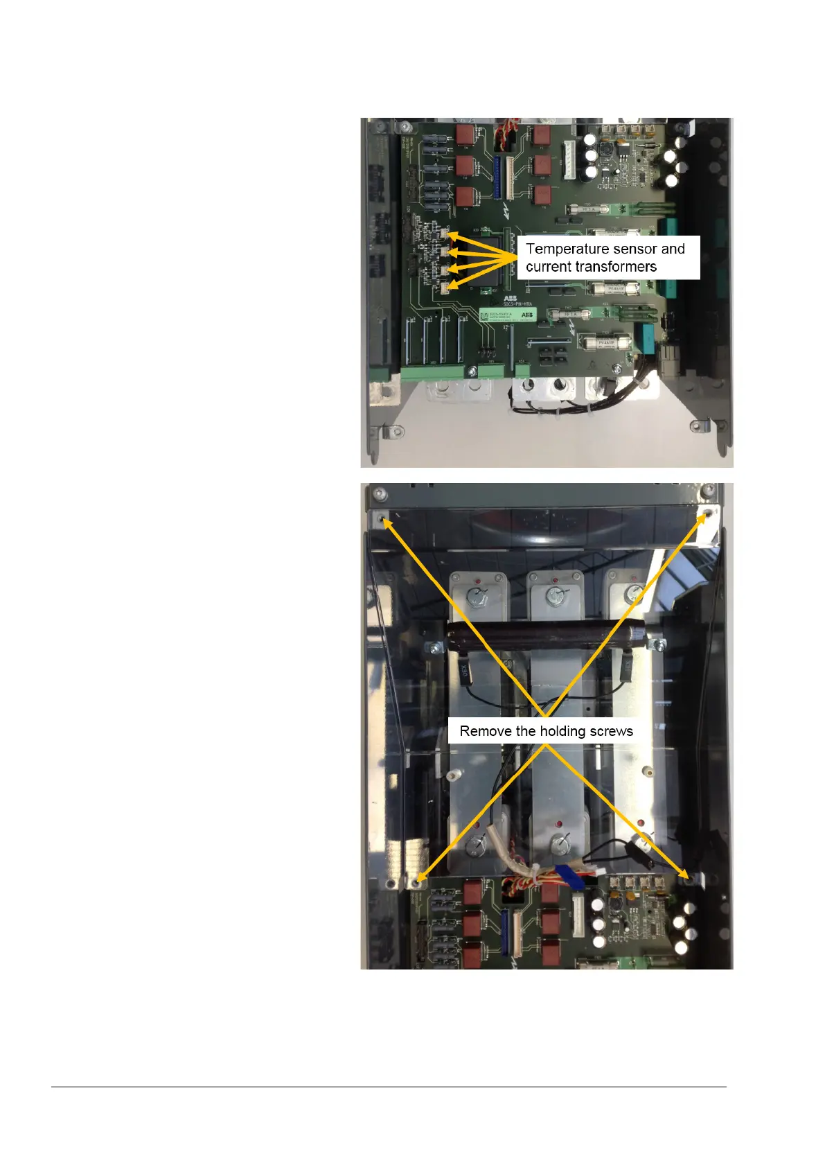 ABB DCT880 - Final Component Removal (T5); Remove sensor, transformers, and holding screws (T5)
