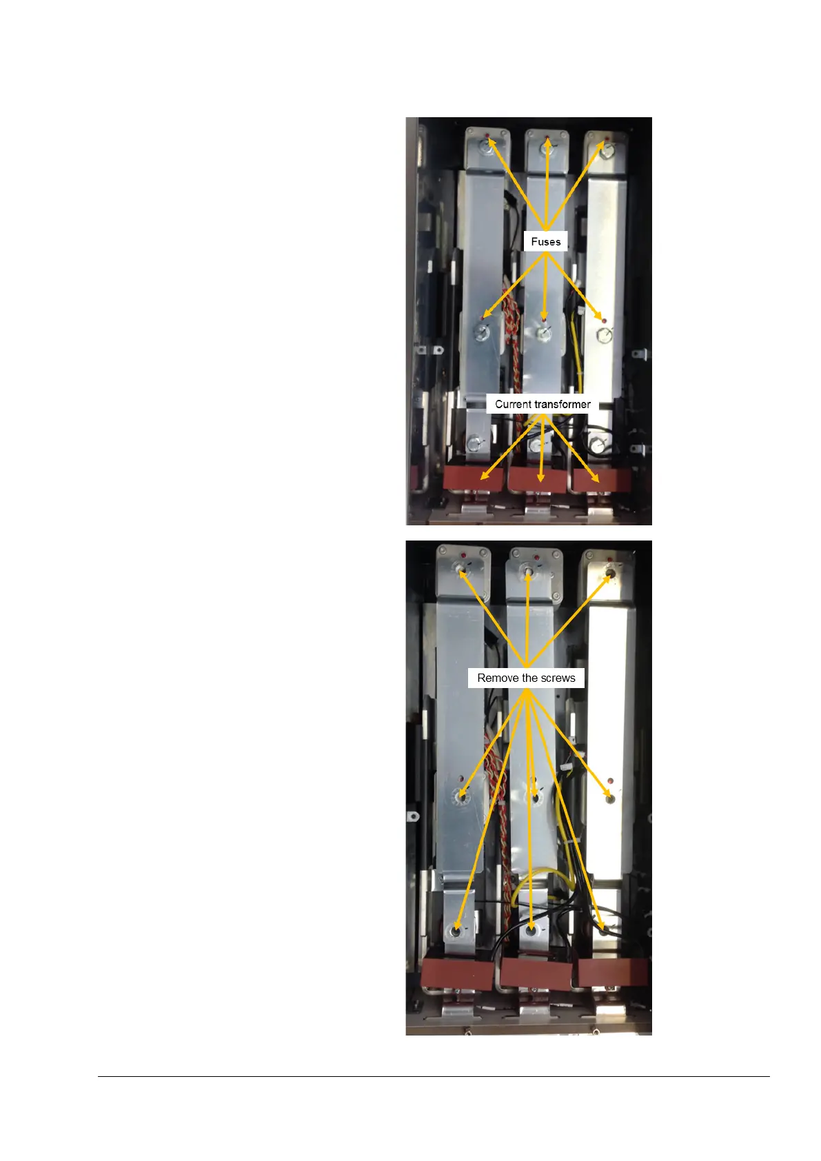 10. Remove the screws of the busbars of the
