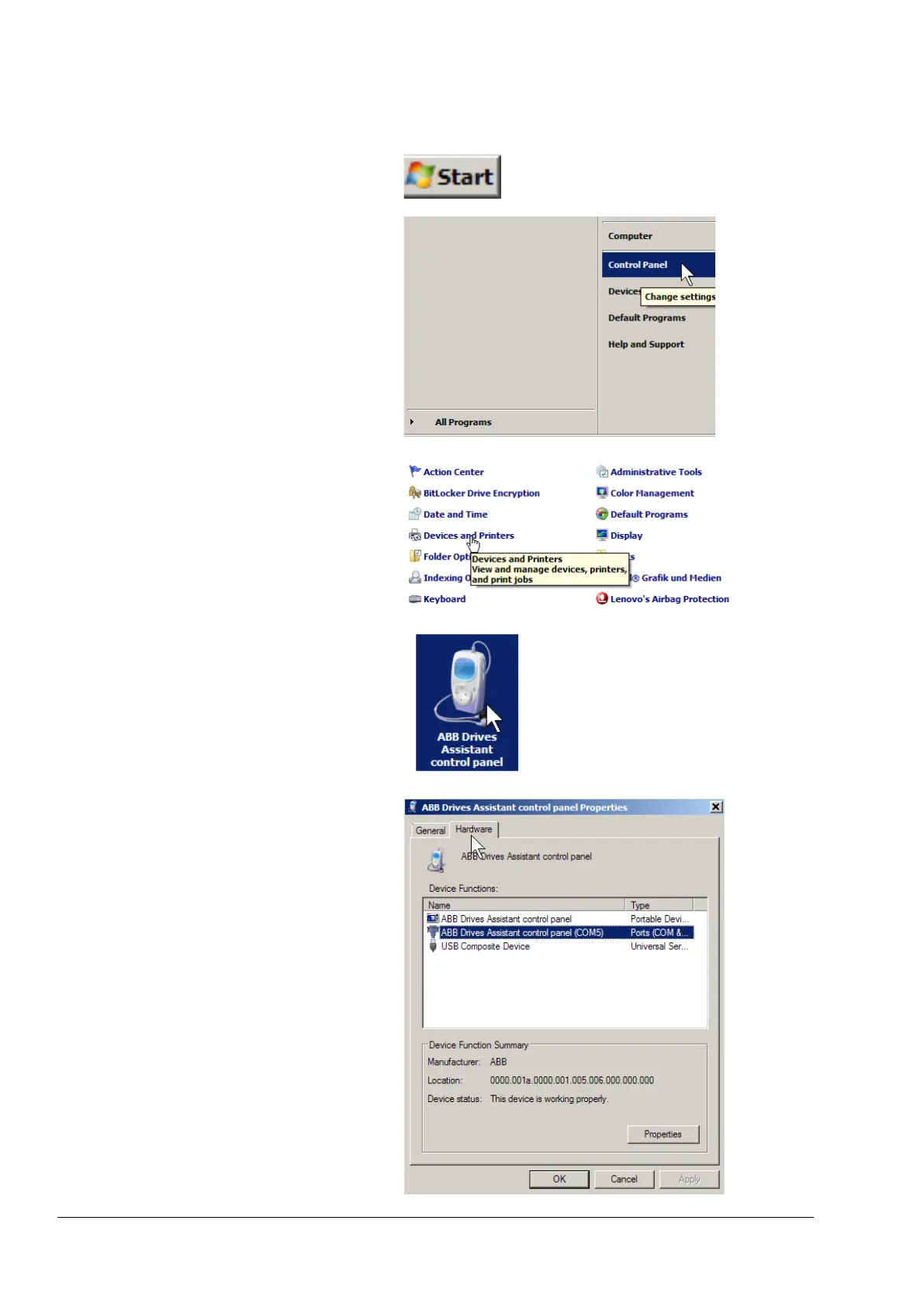ABB DCT880 - Finding and Verifying COM Port; Locate COM port via Control Panel; Verify COM port in Hardware settings