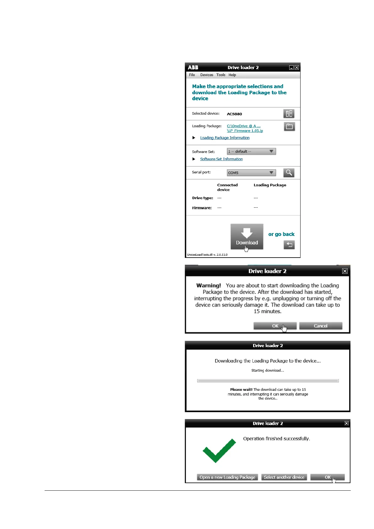 ABB DCT880 - Continuing and Completing Firmware Download; Continue firmware download process; Confirm download start with OK; Wait for download completion