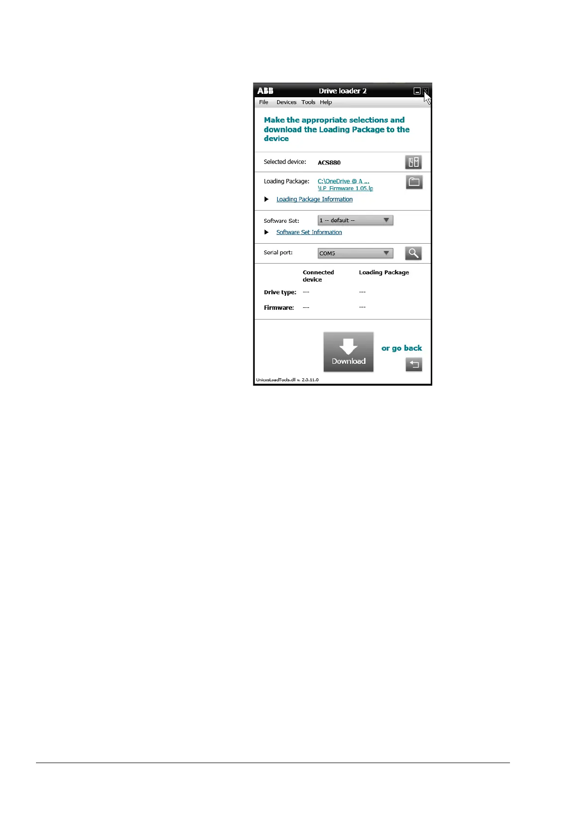 ABB DCT880 - Firmware Download Finalization; Close Drive loader application; Verify installed firmware version