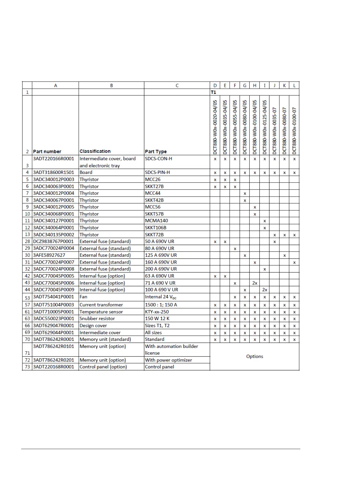 ABB DCT880 - Appendix A: Spare Parts List; Spare parts for T1 (20 A - 125 A)
