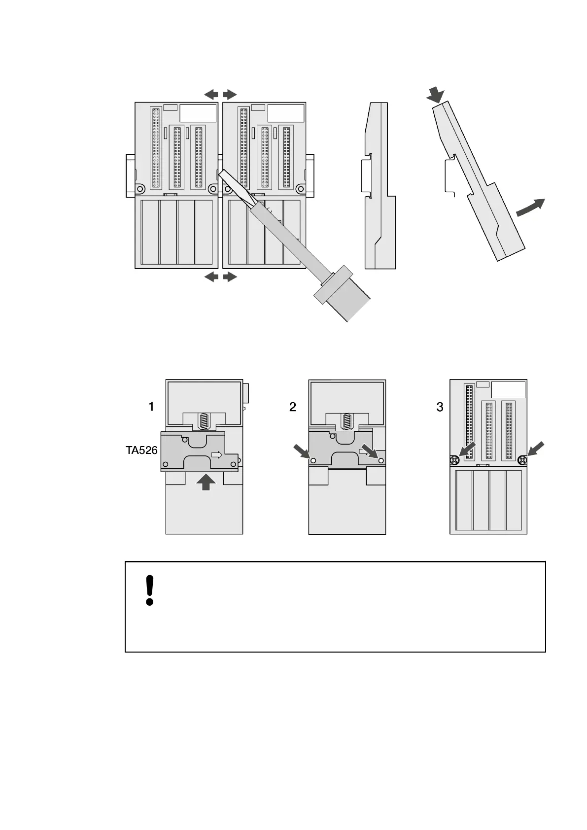 1. TA526 is snapped on the rear side of the module like DIN rails.