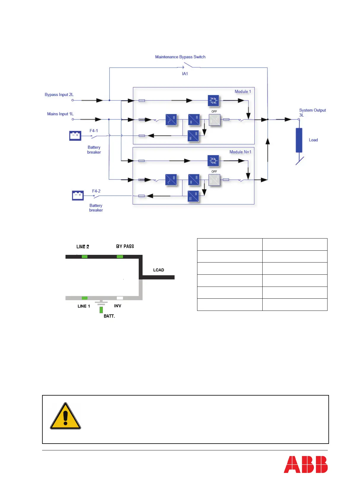 parallel systems). If the utility mains supply (LINE 1) is not available, the energy is supplied by the