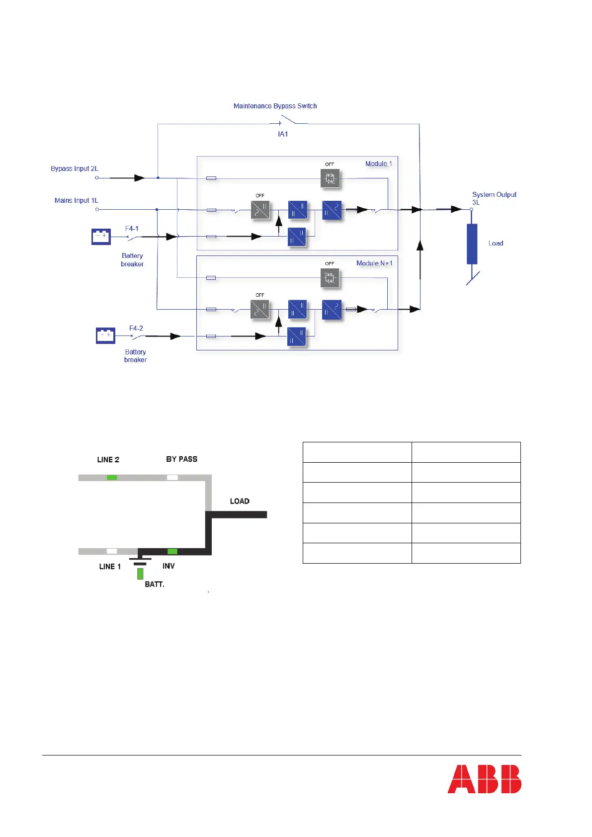 The ON-Battery Mode status is shown in the mimic of the control panel per module as follow: