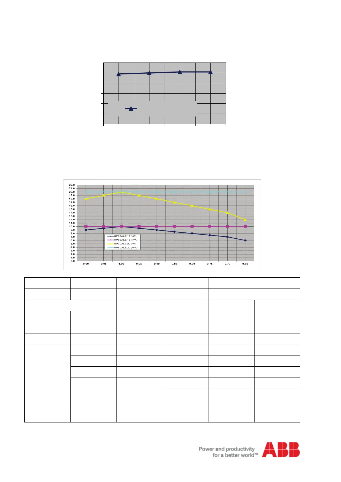 ABB DPA UPScale ST200 - Graphic: AC-AC Efficiency with Linear Load @ Cosphi 1; Graph: Output Power in Kw and Kva Versus Cosphi