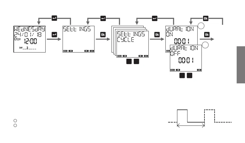 The cycle programme always starts from the on status. In this menu it’s possible to define the duration of on and off.