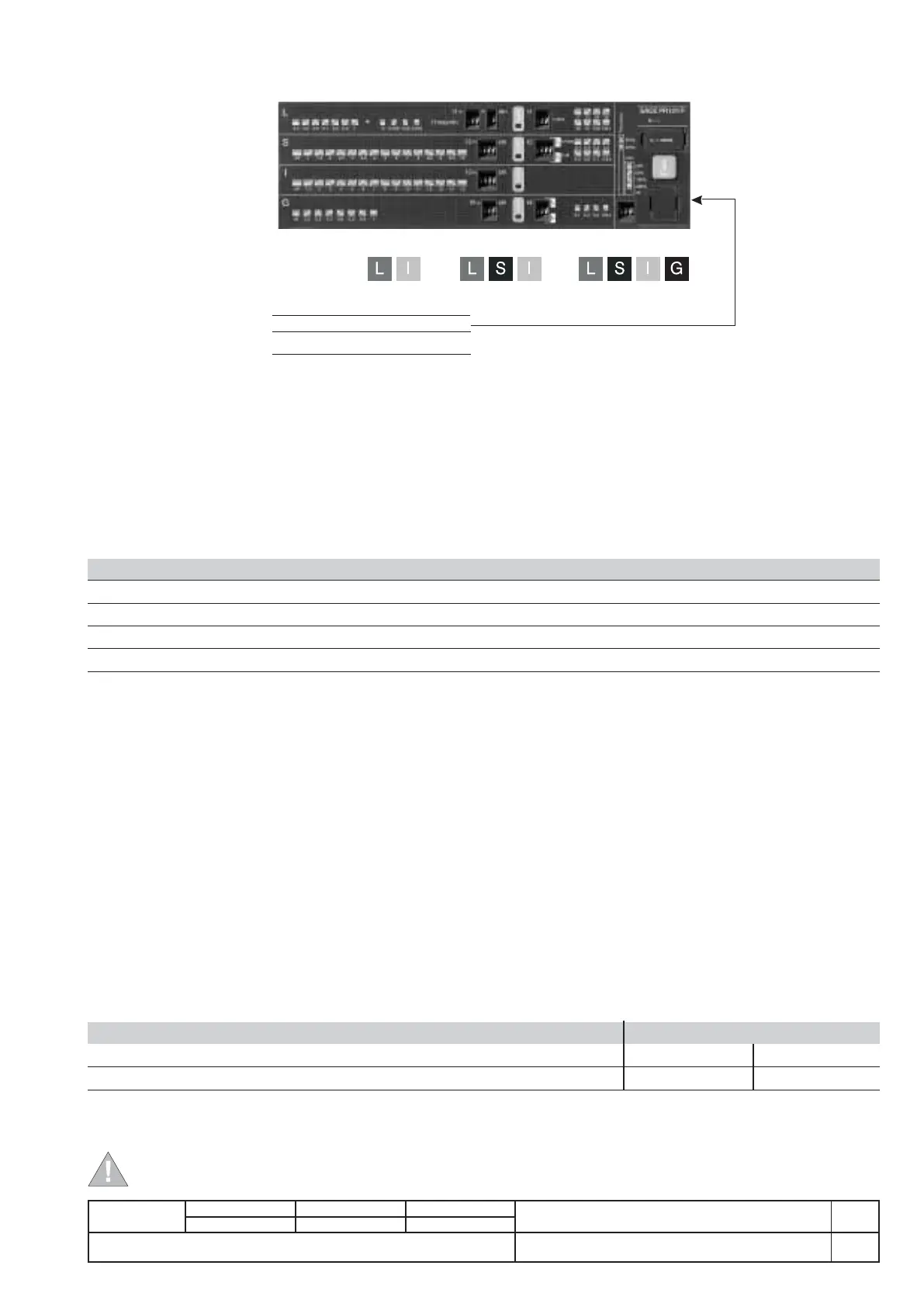 The PR121/P units available, in accordance with the IEC Standards, with the various default and optional protections and modules, are illustrated