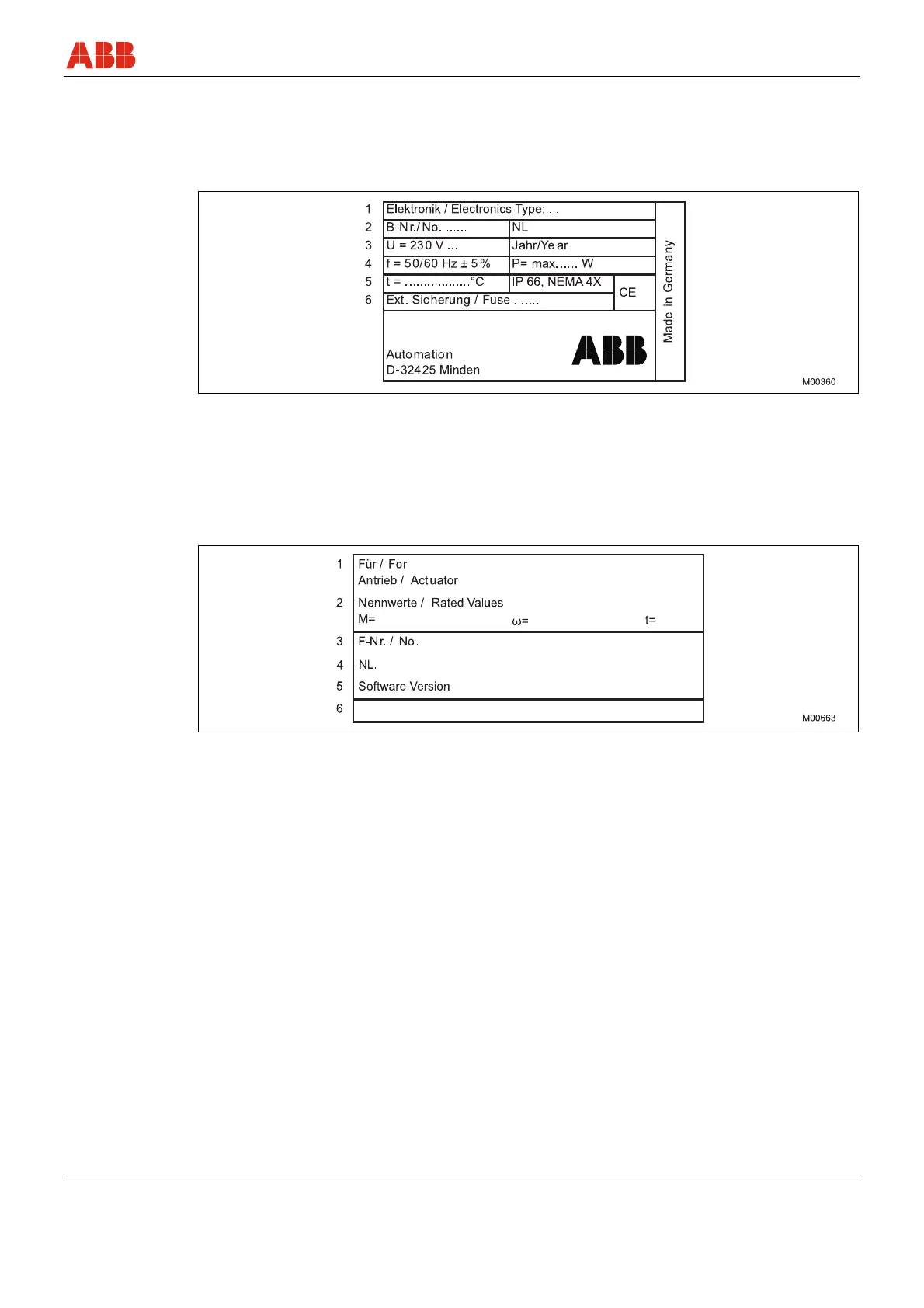1.5.2 Name plates for the power electronic unit