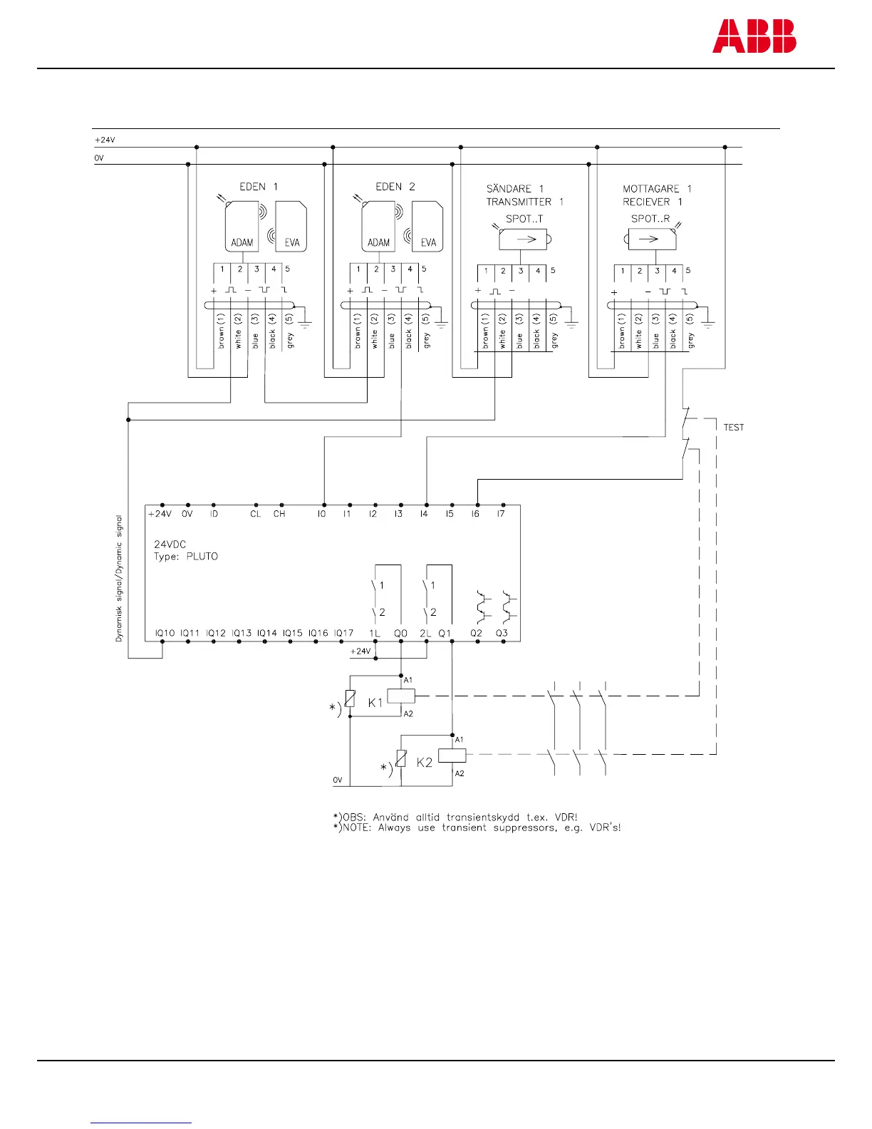Caution! All cable colours according to ABB Jokab Safety standard cables.