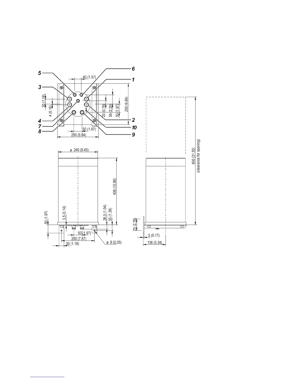 ABB EL3060-Uras26 - Dimensions and Gas Connections of the EL3060-Uras26 Analyzer Unit