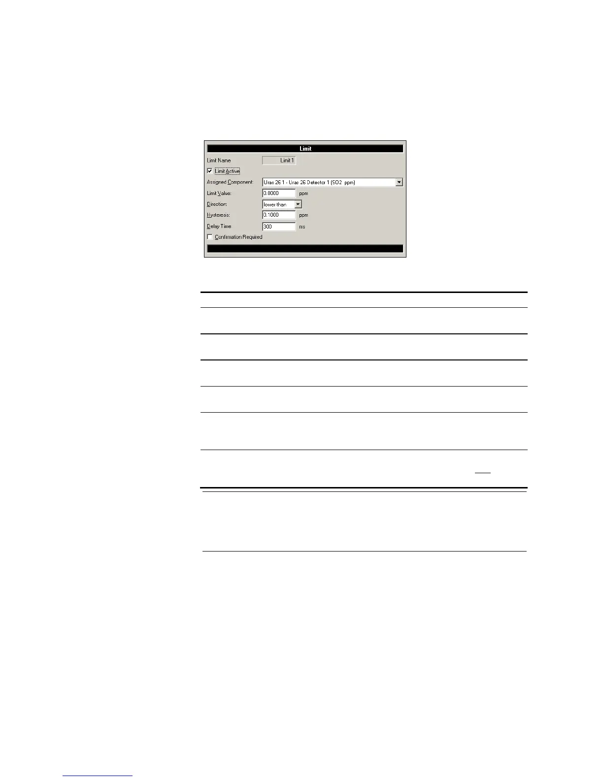 Limit Active The alarm value monitoring can be activated or deactivated.
