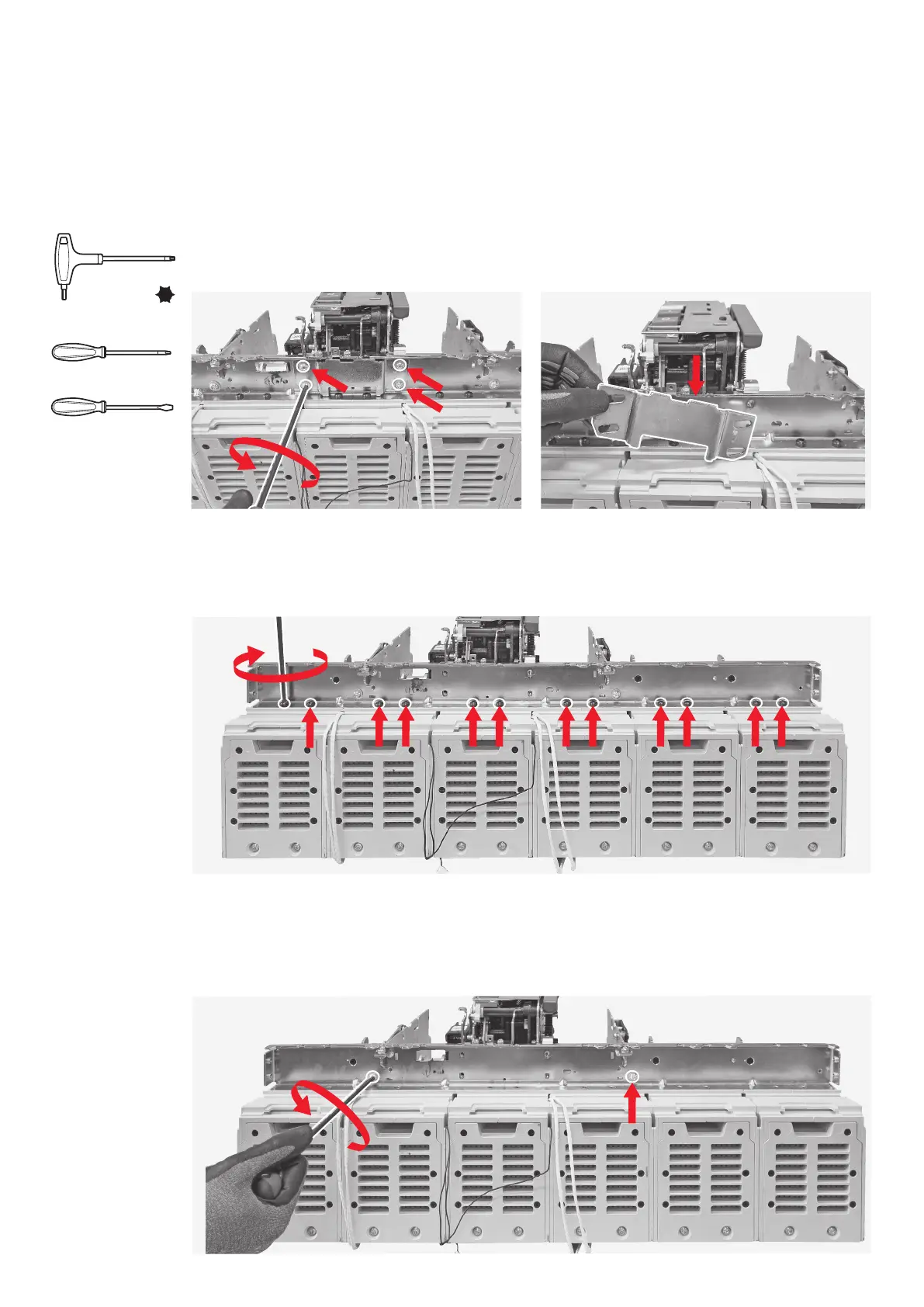 By means of the torx key unscrew the 2 screws fixing the upper cross beam to the circuit breaker