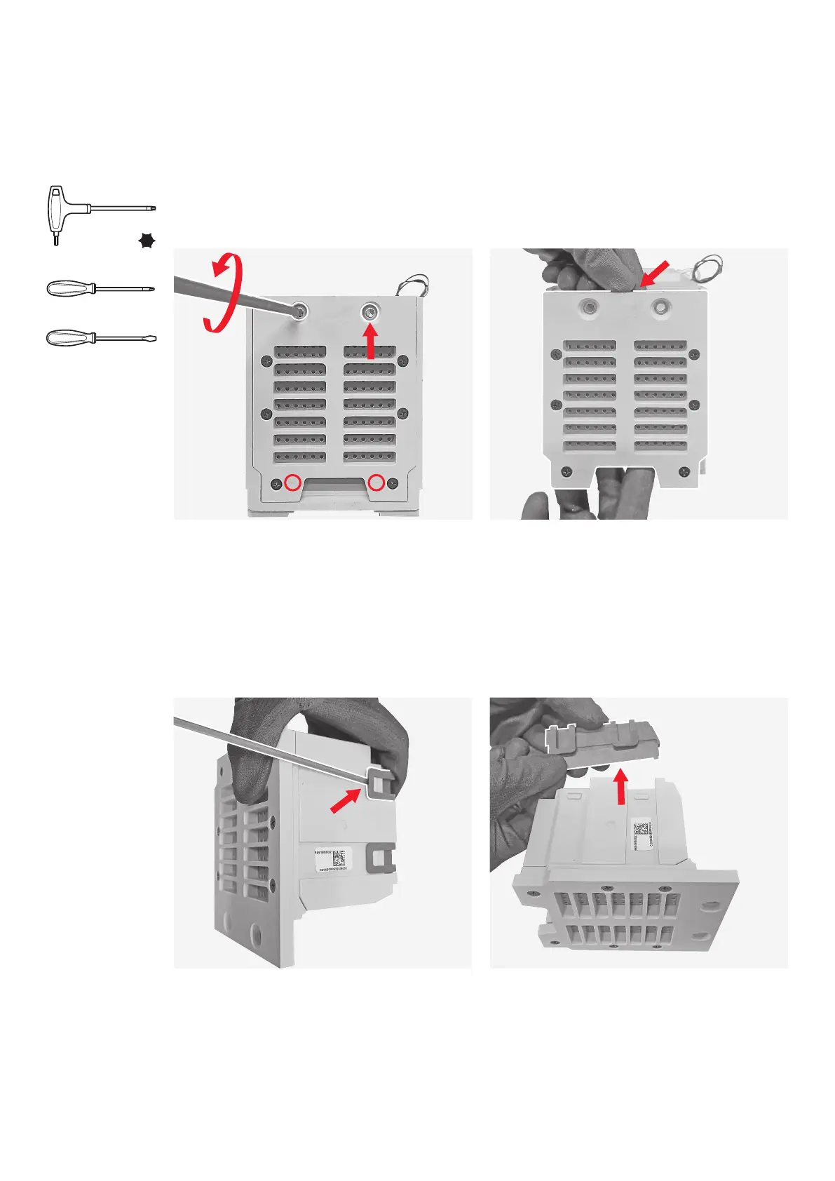 By means of the torx key unscrew the 2 screws