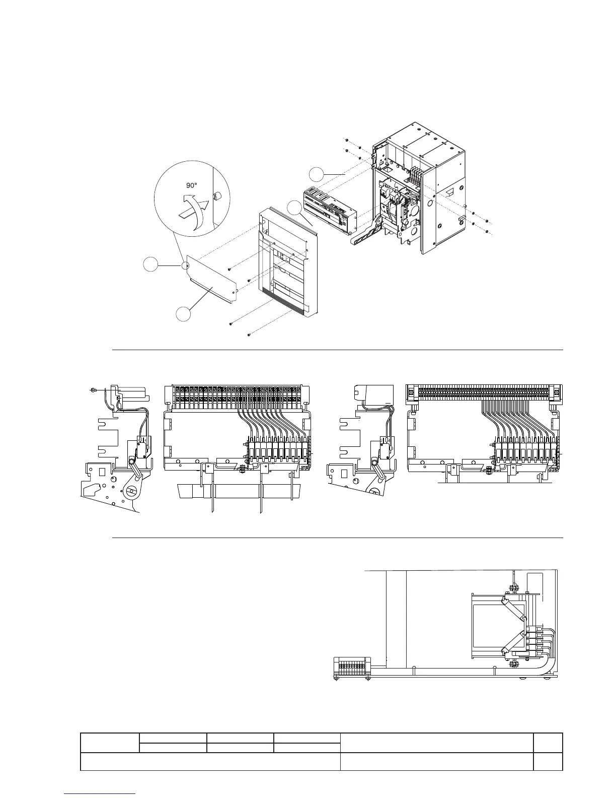 - remove the protection release (4) removing the side nuts (2) and then sliding the release out from the front of the circuit-breaker.
