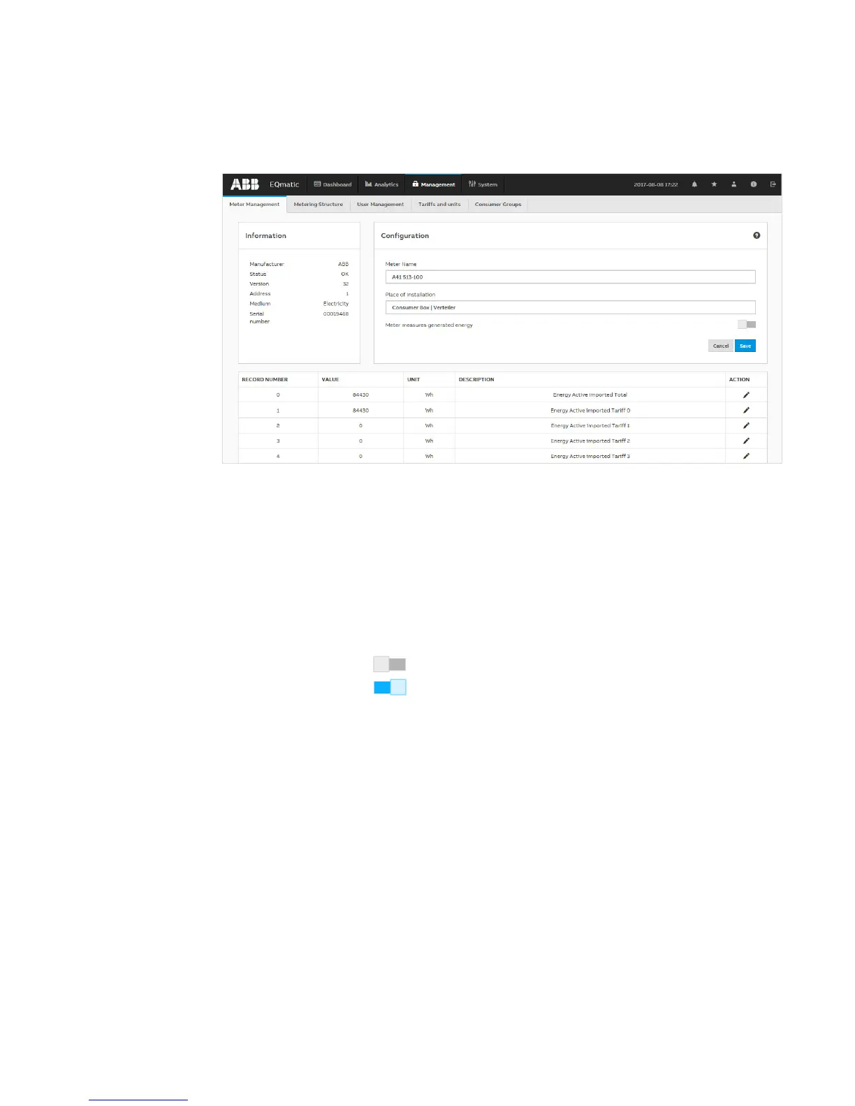 metered values for the energy generated can be evaluated and displayed separately in the later