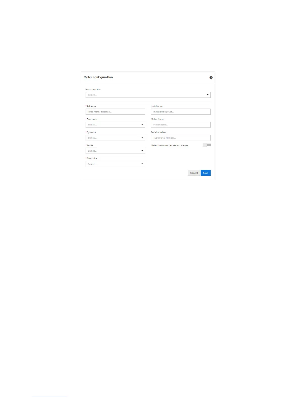 must specify the device-specific information in the window on the Management > Meter > Meters