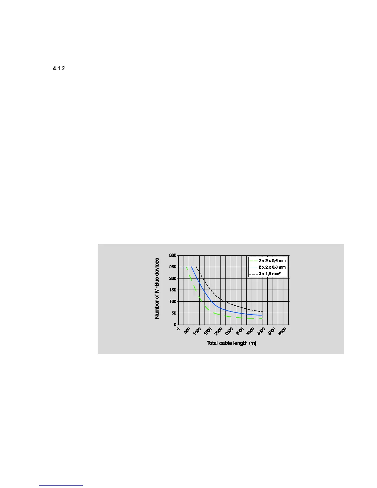 A two-wire cable with a minimum cross section of 1.5 mm² is recommended for an M-Bus line.