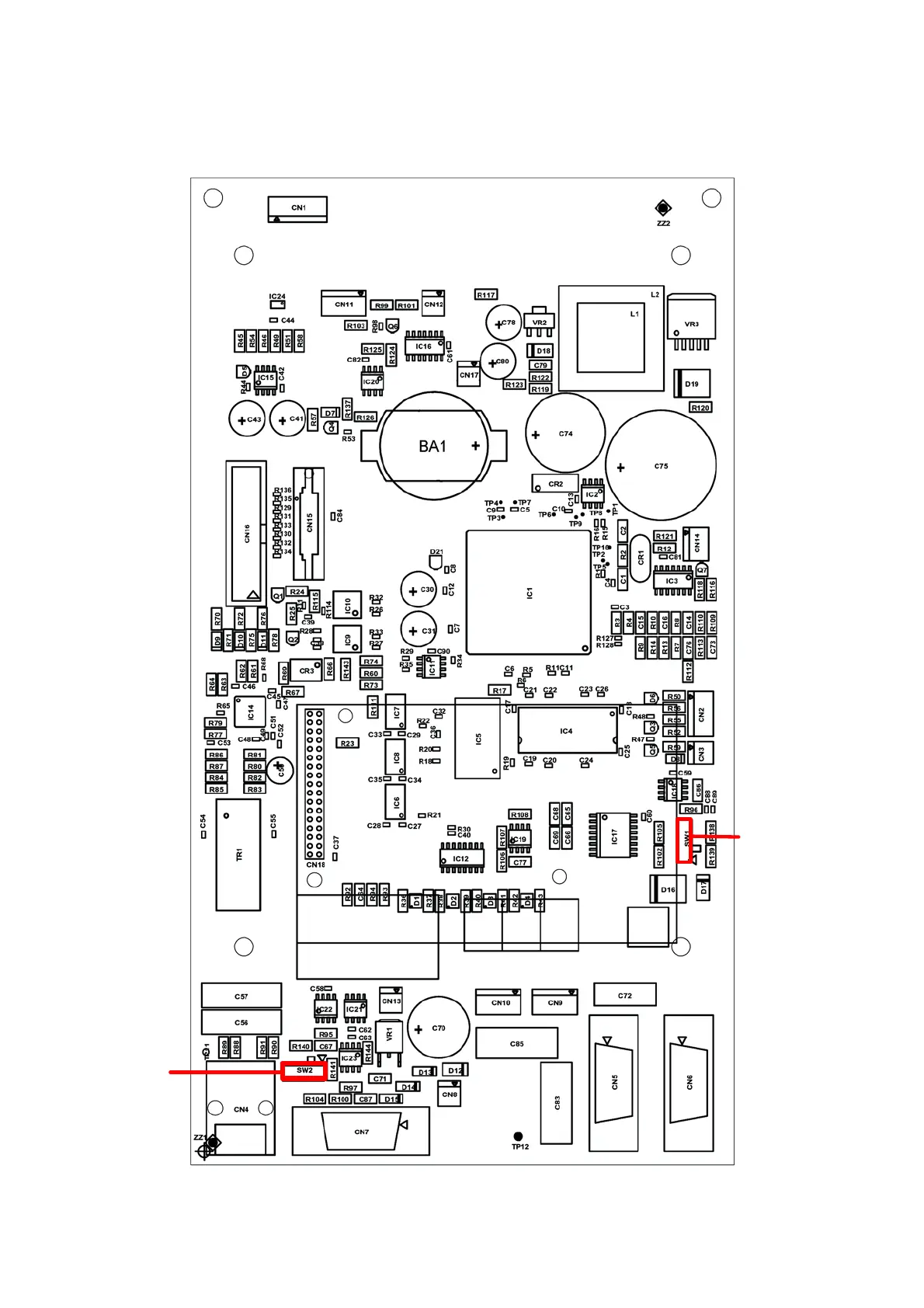 Location of SW1 and SW2 on the welding data board, 24AP1