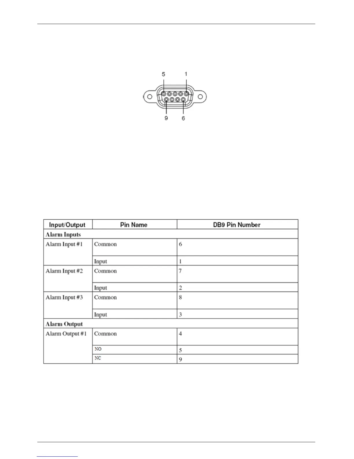 Alarm pin assignments are provided on the following table: