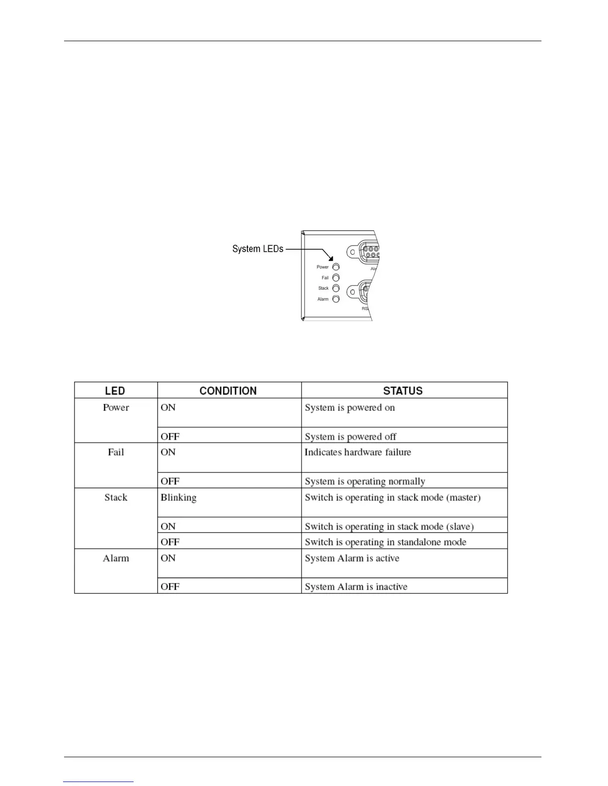 The System Status LEDs on the front panel can be used to monitor system activity. Following Figure