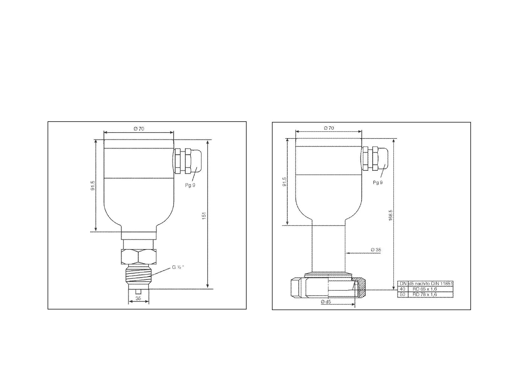 Screwed connection to DIN 11851 (connection 7 and C)