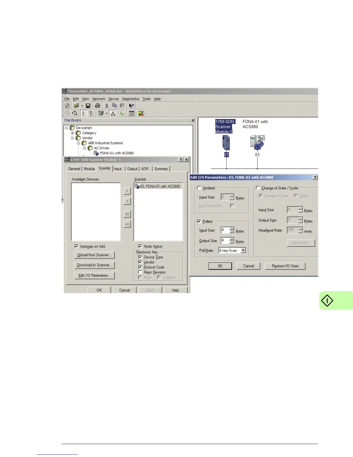 4. Configure the DeviceNet Scanner. Add the drive to Scanlist