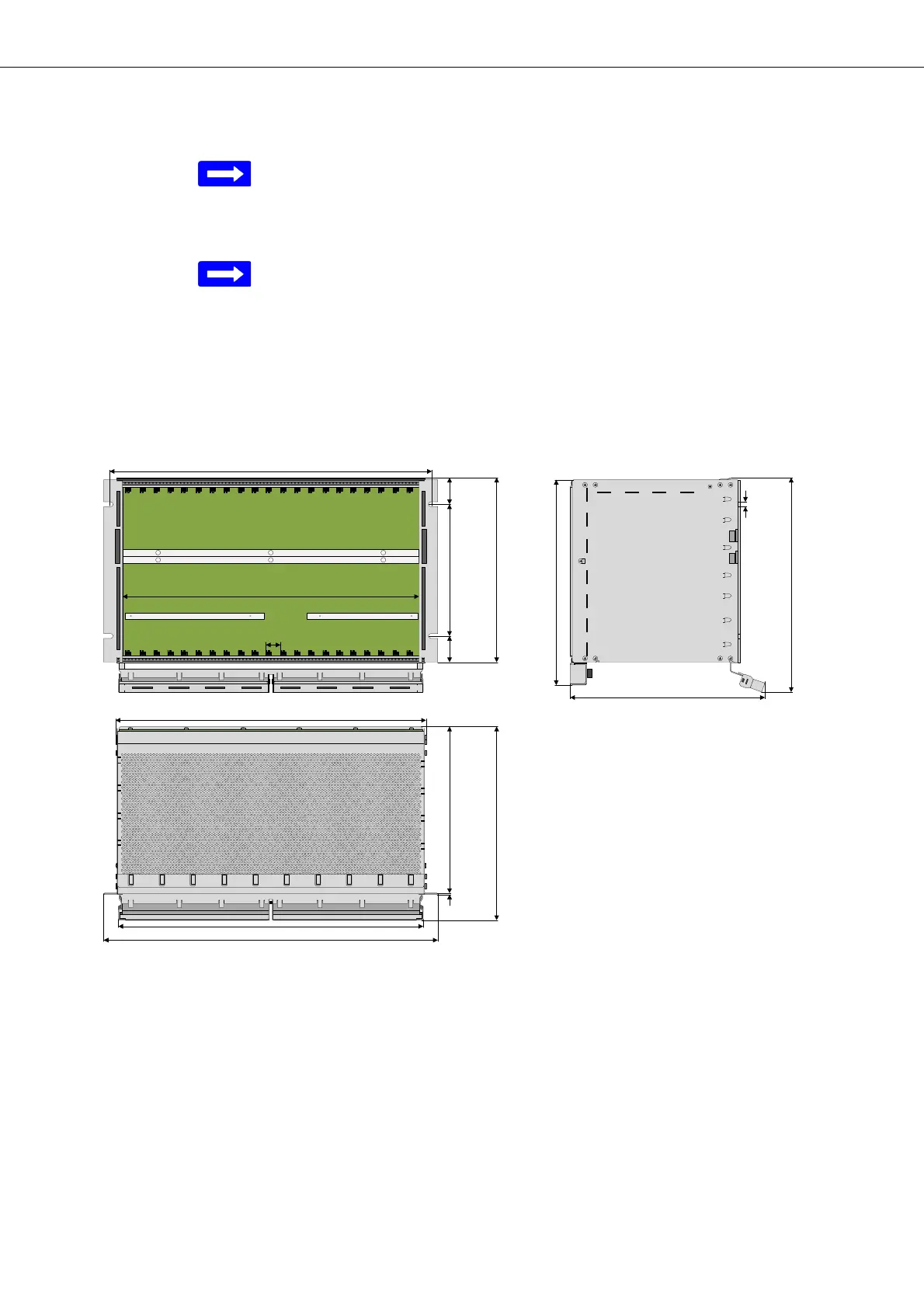 The Figure 8 shows the mechanical dimensions of the 19-inch subrack with