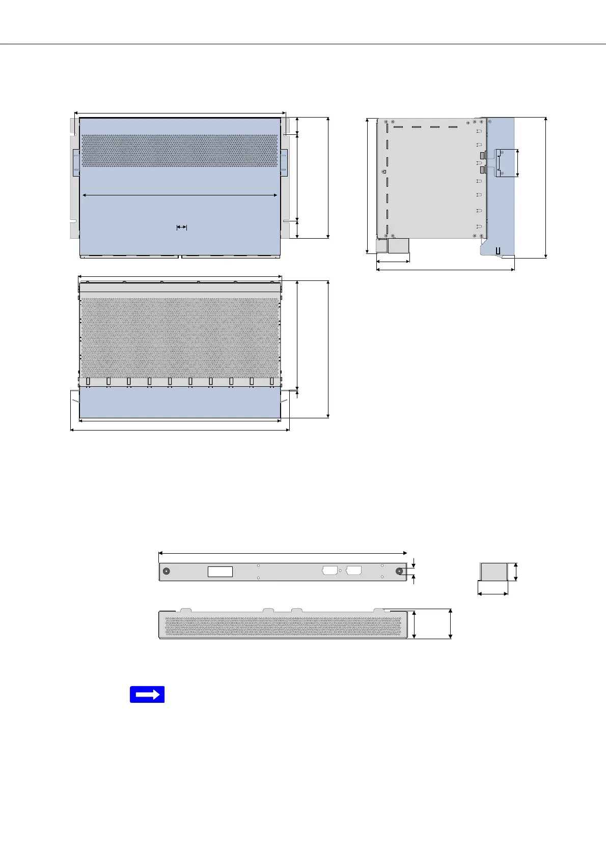The Figure 10 shows the mechanical dimensions of the 19-inch cable tray fit-