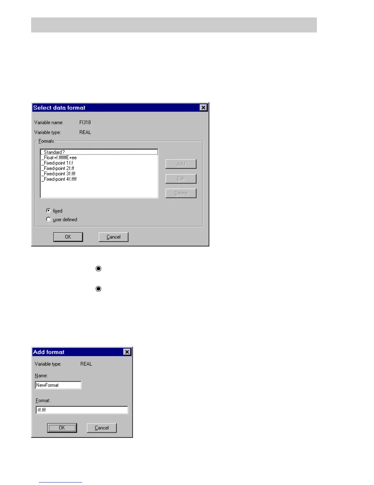 Standard formats for the data type; the ADD,EDIT and DELETE buttons