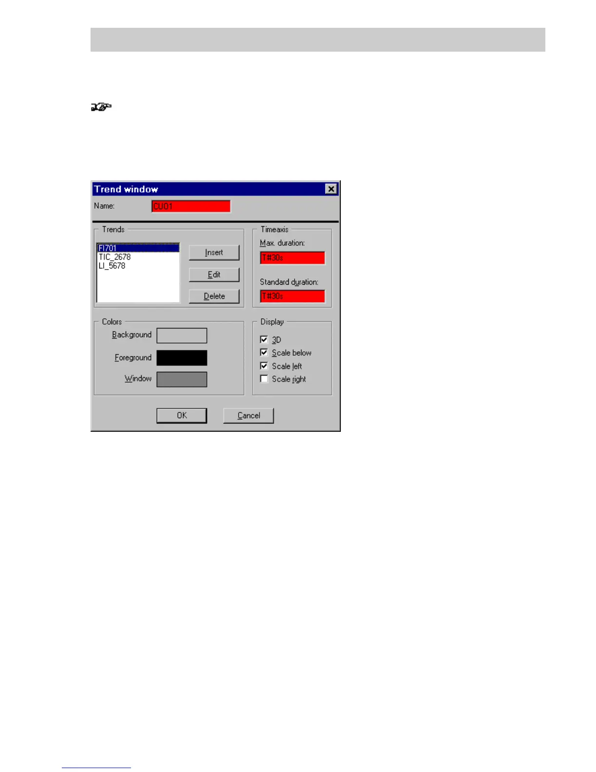 INSERT On selecting the INSERT button, the Trend data window appears, where