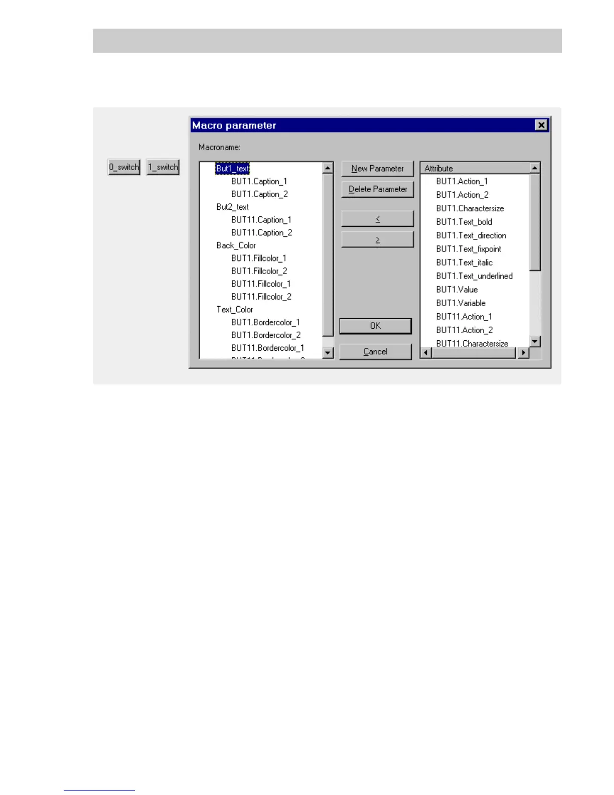 ELETE PARAMETER The macro parameter selected in the left dialog field is deleted. The