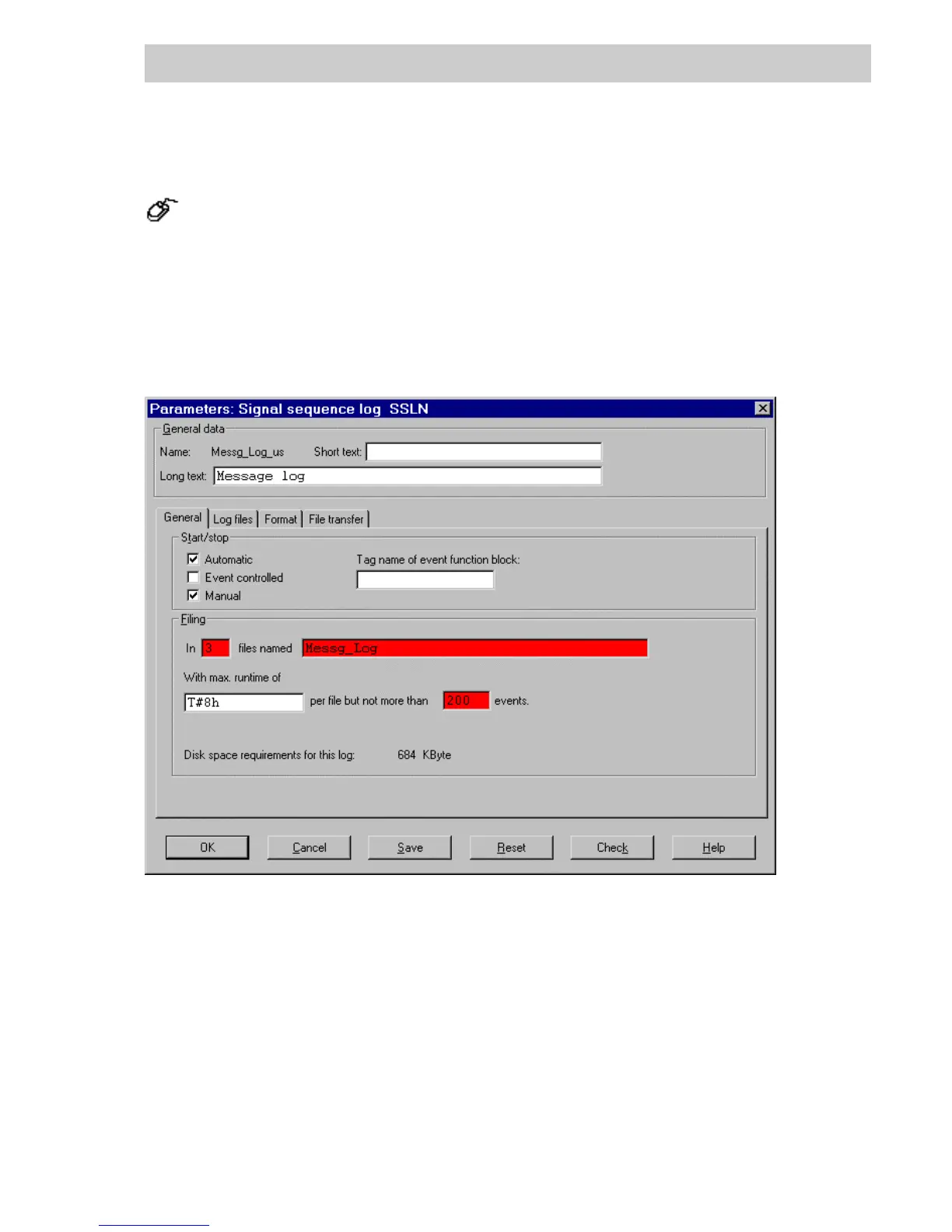 Short text A Short text can be assigned to the signal sequence log. Up to 12 charac-