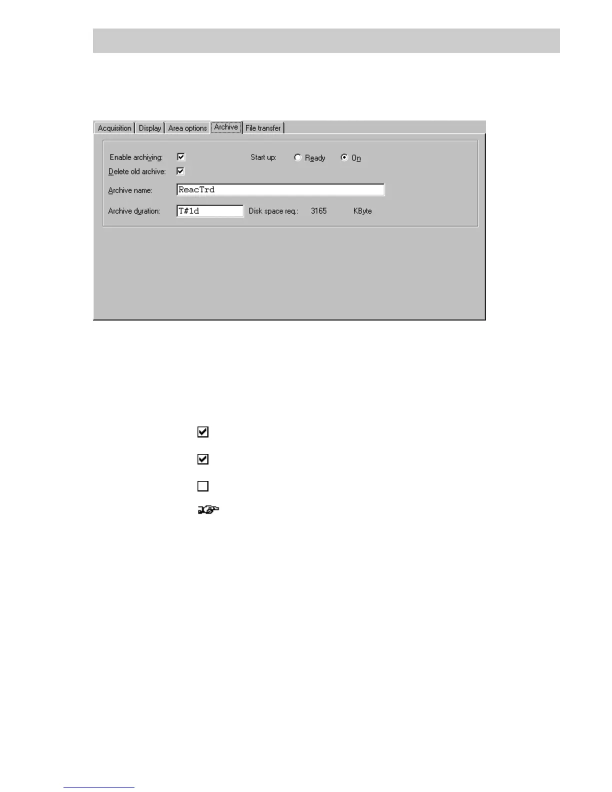 Archive duration The Archive duration is entered according to the IEC 1131-3 time format.
