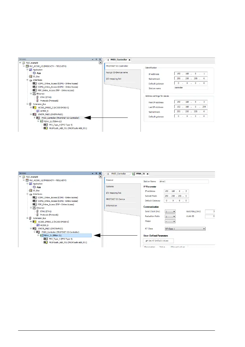 • On the PROFINET I/O Controller tab, define the necessary IP addresses.