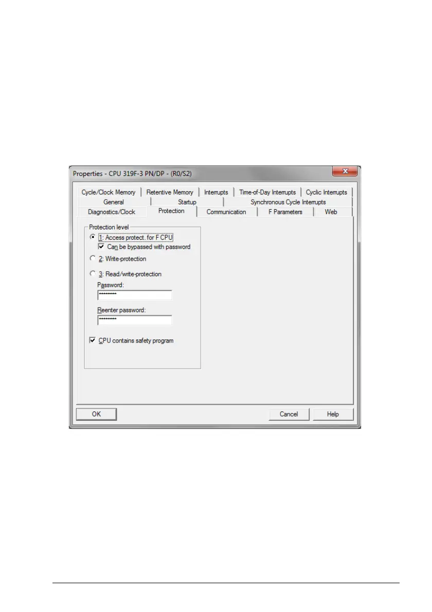 •Select 1: Access protect. for F CPU.