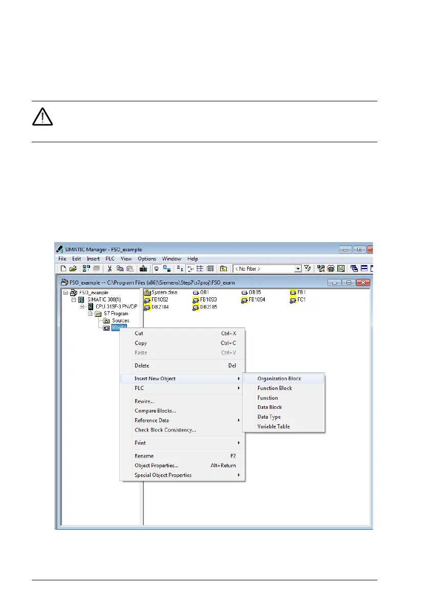 1. In SIMATIC Manager, right-click on the Blocks folder of the S7 Program of the