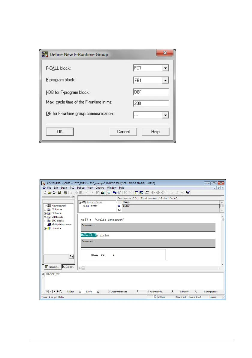 4. Set DB1 as the I-DB for the F-program block and FB1 as the F-program block.