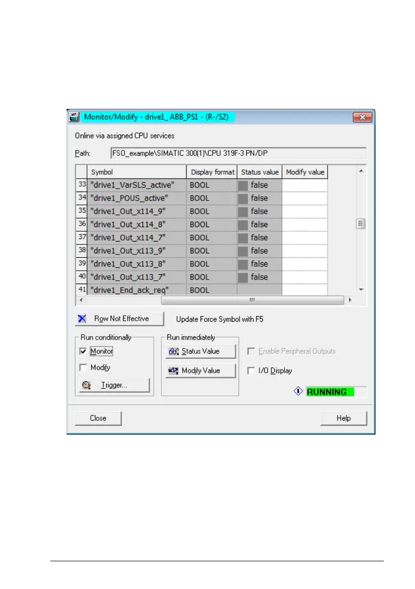 It is possible to monitor the contents of the PROFIsafe message. For example: