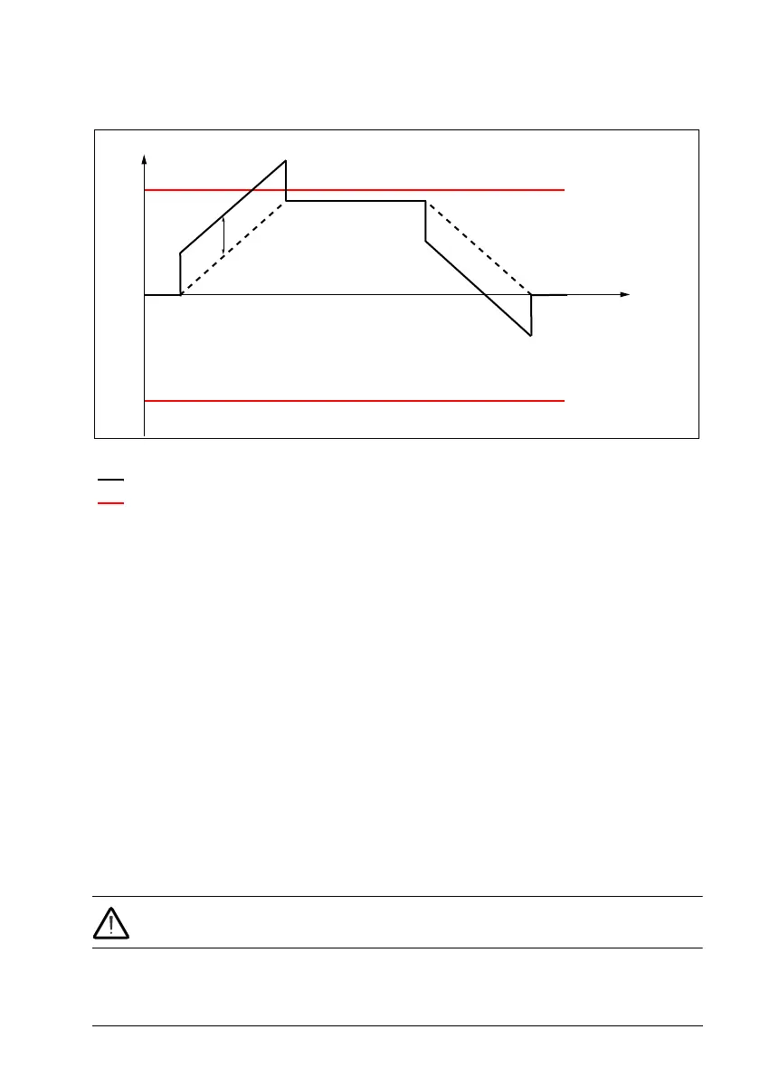 In the example, the motor torque is 100% during the acceleration and the motor slip is