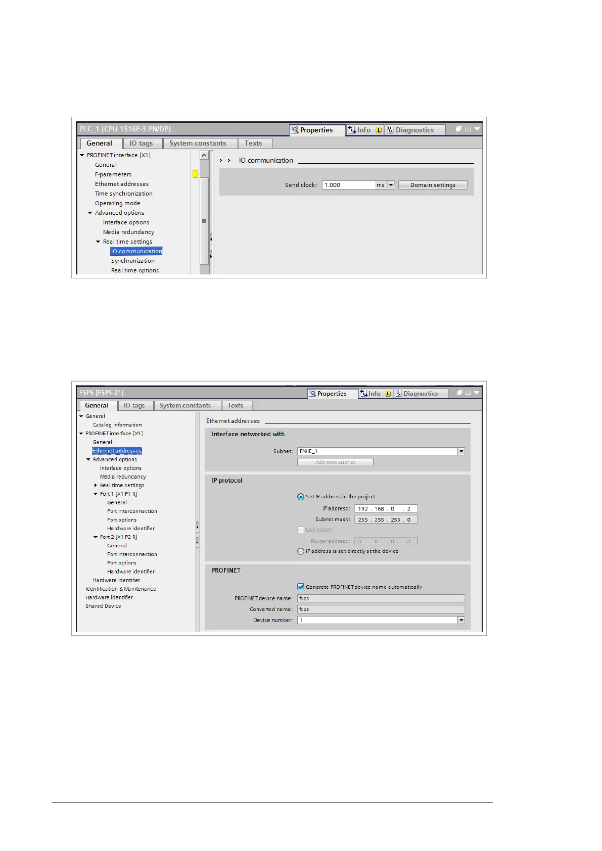 12. In FSPS properties, set FSPS-21 IP address and PROFINET device name. Device