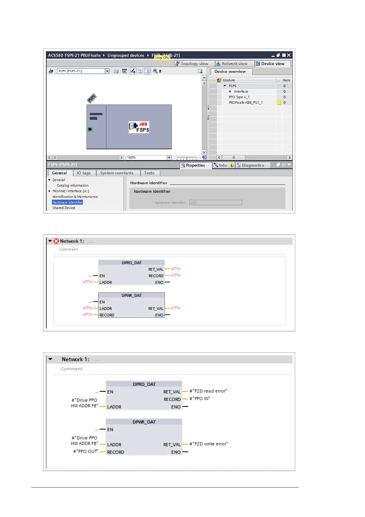 19. In ABB_Drive FB, add blocks DPRD_DAT and DPWR_DAT.