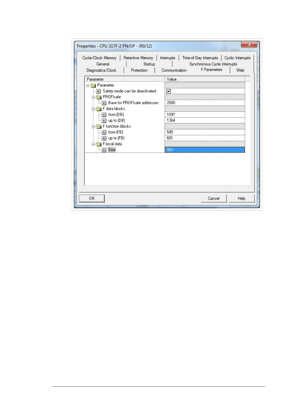 • On the PROFIsafe tab, modify the F_Dest_Add and F_WD_Time values as needed.