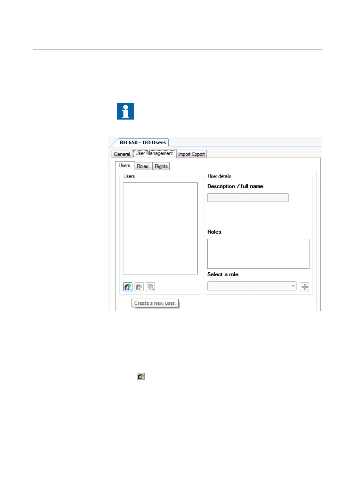 In the User Management tab, the user profiles of the selected IED can be edited.