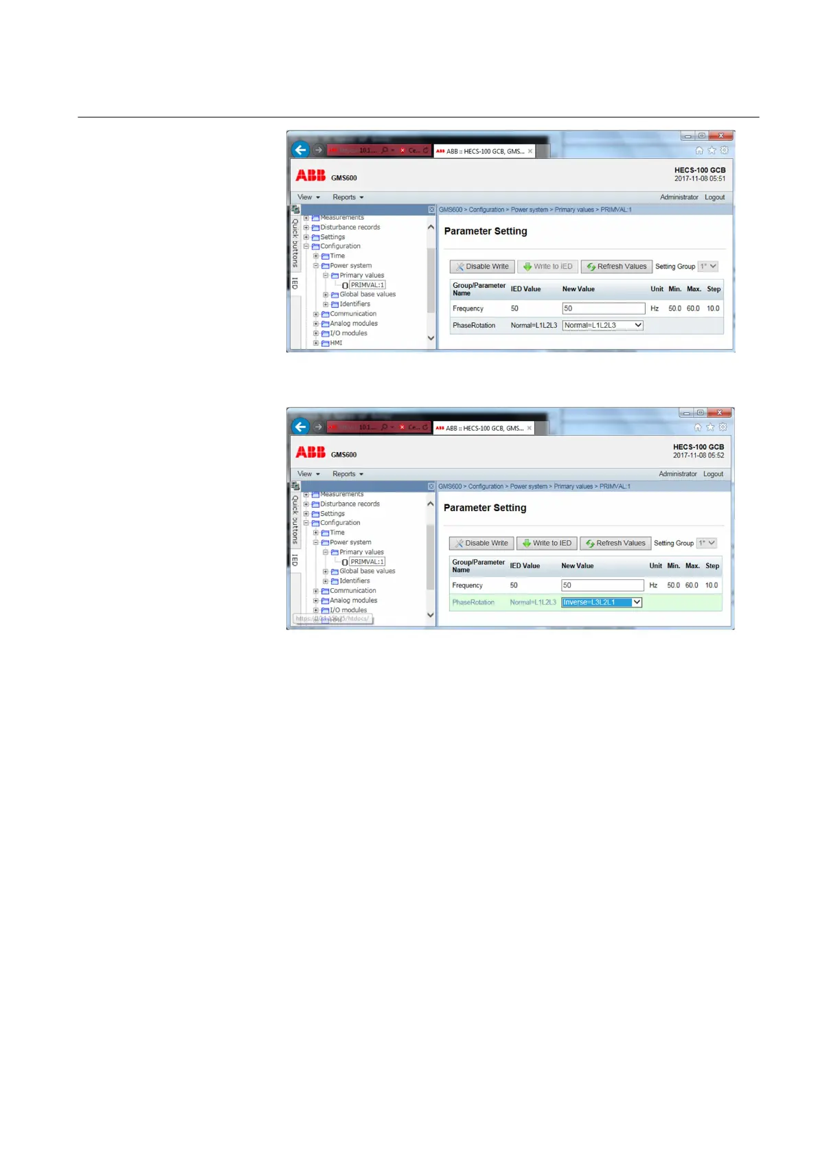 2. Change the parameter and click on Write to IED.